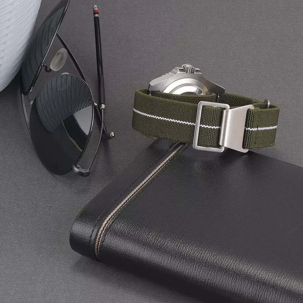 Crafted with precision, the Marine Nationale Elastic NATO strap, exclusively from Watch Straps Canada, epitomizes durability and elegance. Manufactured using a high-grade, smooth nylon thread, this strap is meticulously designed to withstand diverse conditions, ensuring longevity and unwavering quality. Its resilience is matched by its comfort, offering wearers a snug and pleasing fit. Should you find your desired size unavailable, we recommend opting for the next size up for optimal comfort. Dive into the blend of style and endurance with Canada’s choice in watch straps.